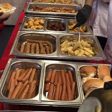 Een lunch bestaande uit belegde bolletjes, diner-buffet met gerechten als warme zalm en minischnitzels of de welbekende patat en snacks; wij zijn u graag van dienst.